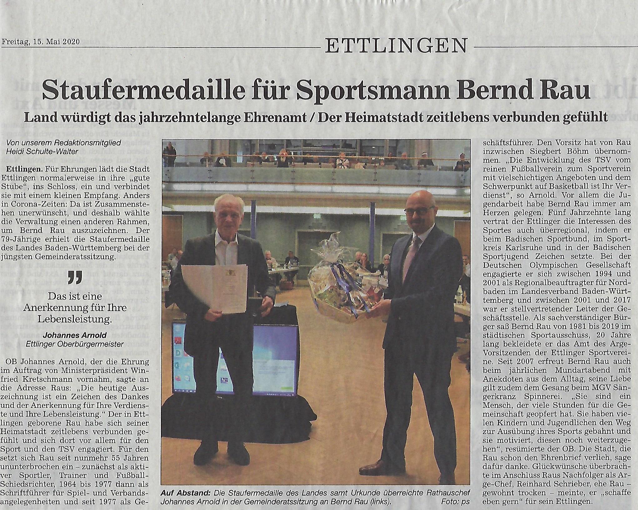 Herzlichen Glückwunsch Bernd Rau zur Staufermedaille